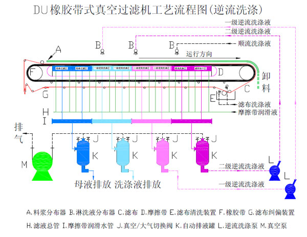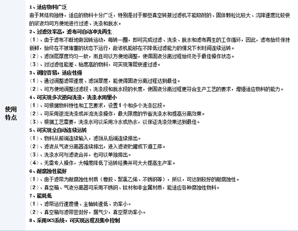橡膠帶式真空過濾機(jī)是以濾布作為過濾介質(zhì),依靠真空負(fù)壓力實(shí)現(xiàn)固液分離的高效分離設(shè)備,該設(shè)備結(jié)構(gòu)簡單,制作和運(yùn)行成本低,易維護(hù)和操作。生產(chǎn)過程全自動運(yùn)行,可根據(jù)生產(chǎn)需要自由調(diào)整運(yùn)行速度、進(jìn)料量、洗滌水量。橡膠帶式真空過濾機(jī)經(jīng)過多年的發(fā)展,技術(shù)已達(dá)到國際先進(jìn)水平,廣泛應(yīng)用于電力環(huán)保、礦山、化工、冶金、造紙、食品、制藥及煤炭等行業(yè)。
